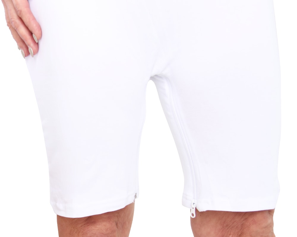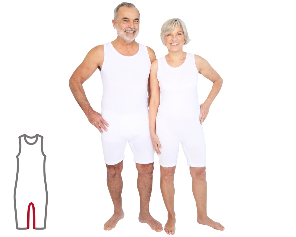 L´ActivePro Grenouillère blanc sans manche zip aux jambes vous aide à prendre soin de vos proches ou de vos résidents, ainsi que des patients atteints de démence. La fermeture éclair des jambes dotée d'une très grande tirette vous permet de changer plus facilement les protections d'incontinence. La grenouillère remplace les sous-vêtements habituels et est extrêmement confortable. La finition de qualité assure une grande efficacité d'utilisation et un excellent rapport qualité/prix. La grenouillère de soin est facile à manipuler et à nettoyer. Pour garantir la longévité de l'article, n'oubliez pas de fermer les fermetures éclair avant chaque lavage. Le matériau, qui se compose principalement de coton, procure une sensation de douceur à la peau. La part de 5 % d'élasthane garantit que l'article garde sa forme même si vous devez le laver fréquemment.