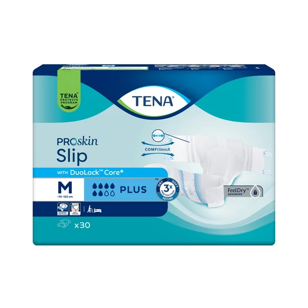 Remarque : Le TENA Slip Plus bénéficie d’un nouvel emballage. Les tailles M et L sont désormais équipées de nouveaux panneaux latéraux élastiques. Pendant la période de transition, des livraisons mixtes peuvent survenir.